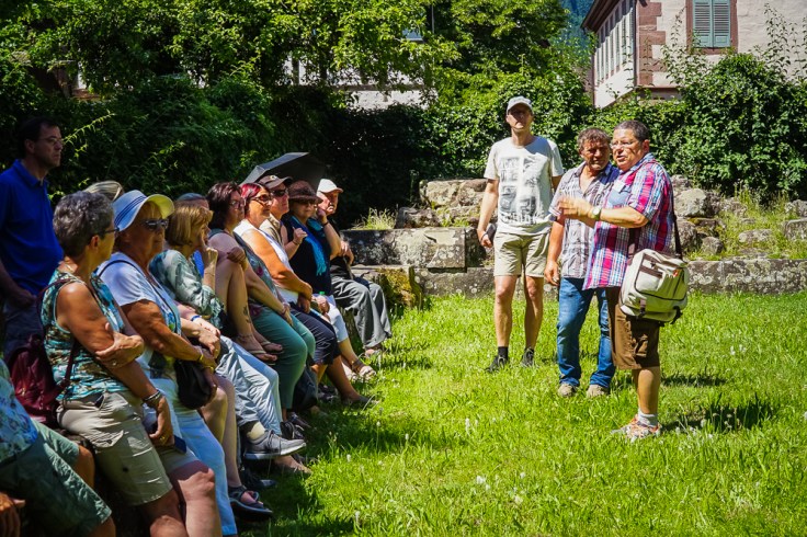 Unterwegs im Schwarzwald war der Historische Verein Rastatt am Sonntag bei seinem Jahresausflug. Das war sehr klug, denn dort waren die Temperaturen etwas erträglicher als in der Rheinebene. Zunächst wurde das Kloster Hirsau besucht, das für die Stadtgeschichte von Rastatt eine Rolle spielt: im Hirsauer Codex, einer um das Jahr 1500 entstandenen Sammlung von Quellen ist das Dorf Rasteden für die Zeit von ca. 1084 erstmals erwähnt. Das Kloster St.Peter und Paul in Hirsau war im 11. Jahrhundert das baulich größte Kloster im deutschsprachigen Raum. Die Kirche im romanischen Stil hatte eine Länge von 70 Metern und bot Raum für mehrere Tausend Menschen, das Kloster selbst war zeitweise von 300 Mönchen bewohnt. Zerstört wurde die Anlage 1692 im pfälzischen Erbfolgekrieg durch französische Truppen bis auf den markanten Eulenturm. Alljährlich findet in den pittoresken Ruinen des Kreuzgangs ein Musikfestival statt.