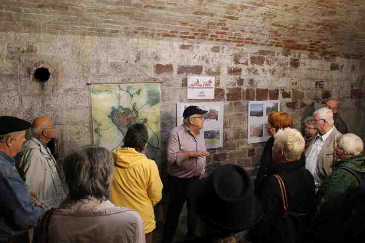 Karlsruhe/Rastatt. Am vergangenen Wochenende (28.09.) konnten der Historische Verein Rastatt und die KulturRegion Karlsruhe rund dreißig Denkmal’schätze‘ zu einem Ausflug in die Rastatter Vergangenheit be-grüßen. Ausgangspunkt waren die unterirdischen Ka-sematten der Bastion 27 der ehemaligen Bundesfes-tung Rastatt. „Was uns verbindet, ist der ehrenamtliche Einsatz für den Erhalt und die gesellschaftliche Vermitt-lung unseres Kulturerbes“, erinnerte Dieter Wolf, der erste Vorsitzende des Historischen Vereins, zu Beginn an den Hintergrund des regionalen Austausches. Denn alle gehörten zu den Bewerbern für den Kulturpreis der TechnologieRegion Karlsruhe unter dem Motto „Denk-mal’schätze‘ gesucht“. Angesprochen waren die vielen ehrenamtlichen Akteure in der Denkmalpflege. Als ei-ner der vier Preisträger hatte sich der Historische Ver-ein Rastatt bereit erklärt, sein „Pflegekind“ einmal in dieser Runde vorzustellen. Im Frühjahr konnte sich die Gruppe bereits beim ersten Preisträger, dem Forum Gernsbacher Zehntscheuern, ein eigenes Bild von de-ren Vereinsarbeit machen. Die Initiative für dieses er-neute Netzwerktreffen ging von der KulturRegion Karls-ruhe aus, die auch das Konzept und die Organisation des Kulturpreises verantwortet hatte. Nach einem herz-haften „zweiten Frühstück“ führte Dieter Wolf die Gäste mit eindrücklichen Schilderungen durch die Räume der ehemaligen Rastatter Festung, die vom Historischen Verein über die Jahre wieder freigelegt wurden. Im An-schluss konnten sich die Teilnehmer oberirdisch noch einer ebenso fachkundigen, historischen Stadtführung von Oliver Fieg vom Rastatter Stadtarchiv anschließen.