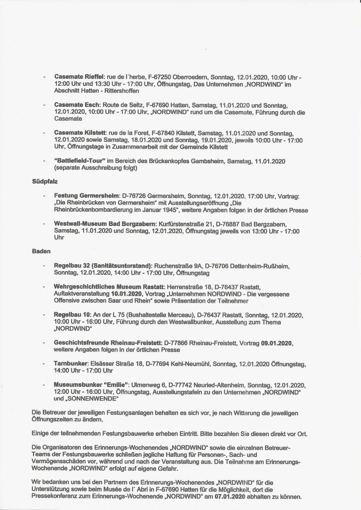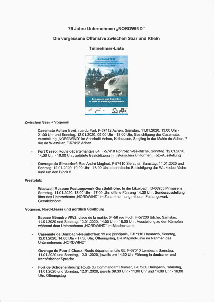 Erinnerung und Gedenken in über 15 Festungsbauwerken an die zahlreichen Opfer der letzten deutschen Großoffensive unter der Bezeichnung „Unternehmen Nordwind“ im Januar 1945….