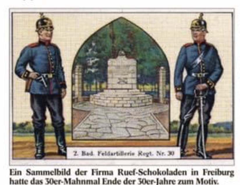 Bild 3: Ein Sammelbild der Firma Ruef-Schokoladen in Freiburg hatte auch das 30er-Mahnmal Ende der 30er-Jahre bildlich festgehalten.