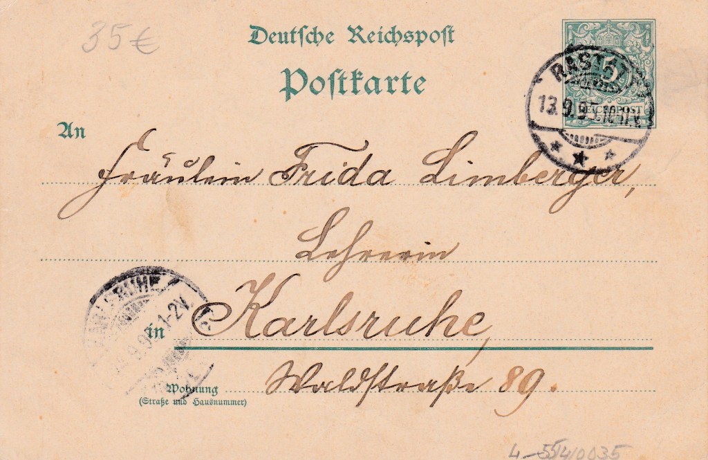 RW. Eine kuriose Ansichtspostkarte mit dem Poststempel vom 13. September 1895 führte zu einer Idee: Der Historische Verein Rastatt will die durch einen Poststempel belegbare älteste Rastatter gelaufene Ansichtspostkarte präsentieren und mit einem lohnenden Preis prämieren. Mit einem Bild der Vorder- und Rückseite sind die Motive an