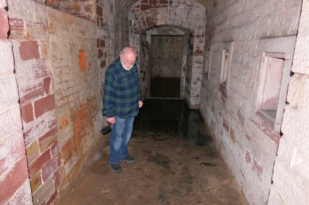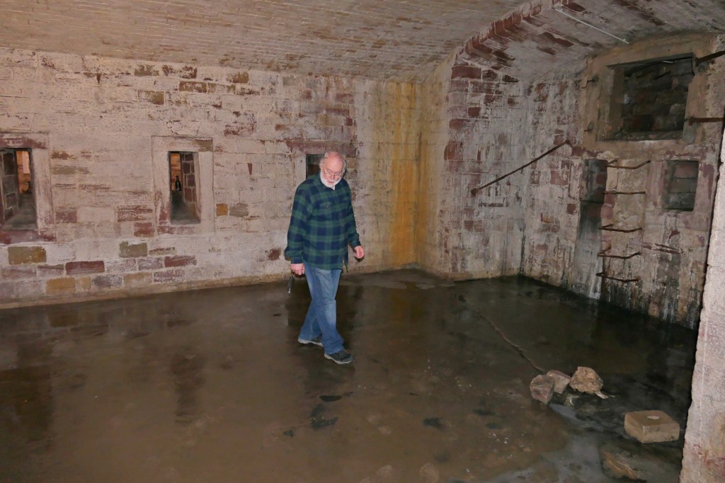 Bild: Schlechte Perspektiven gibt es für die Bastion 27, nach einem üblen Wassereinbruch. Karl Schweizer (Bild) vom Historischen Verein vor Ort.