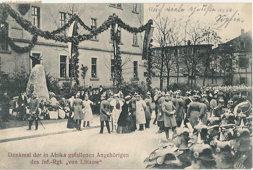 An ein dunkles Kapitel der deutschen Kolonialgeschichte erinnert das Lützower-Denkmal im Dörfel, welches 1929 versetzt wurde.