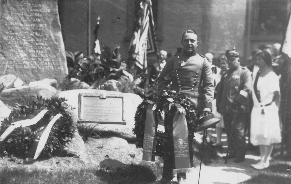 Unter großer Anteilnahme von Militärs und Bevölkerung wurde im Rastatter Dörfel das Kolonialdenkmal eingeweiht. Heute steht es auf der anderen Straßenseite der Friedrich-Ebert-Straße als ursprünglich.