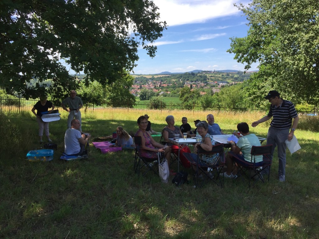 Der bronzene Kopf des Kaisers tauchte erst vor wenigen Jahren in Paris auf, wo er im Musée des Invalides aus Unkenntnis als Fußbank gedient hatte; er wurde in das Museum Woerth überführt, dem die Geschichtsinteressierten anschließend einen Besuch abstatteten. Vor dem ramponierten Denkmalsockel hatten Karl-Josef und Heiderose Fritz ein Picknick vorbereitet und in reizvoller Lage, mit Blick auf das idyllische Städtchen Woerth, stärkte sich der Historische Verein.