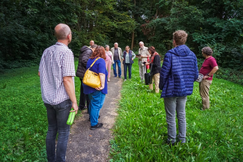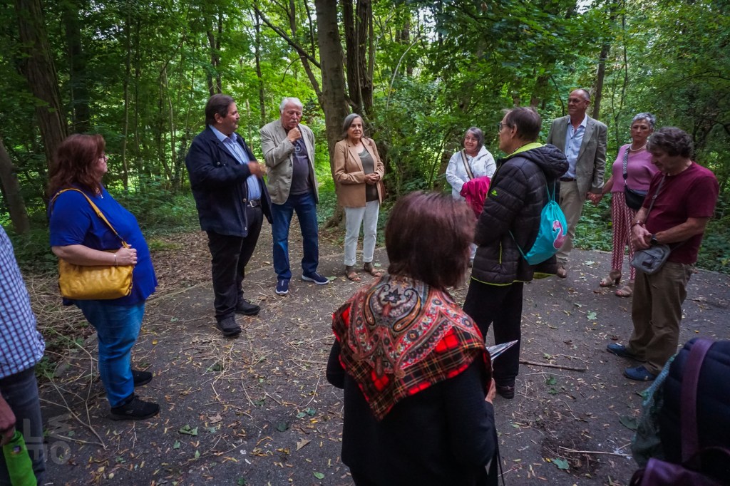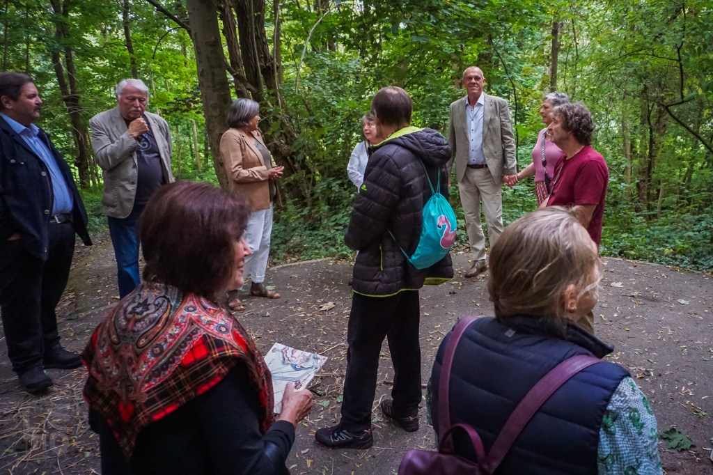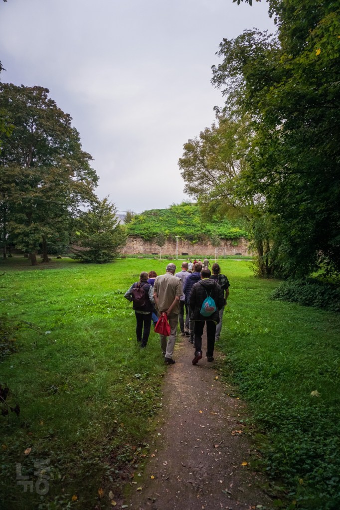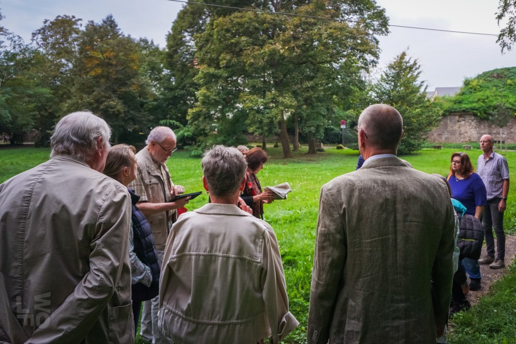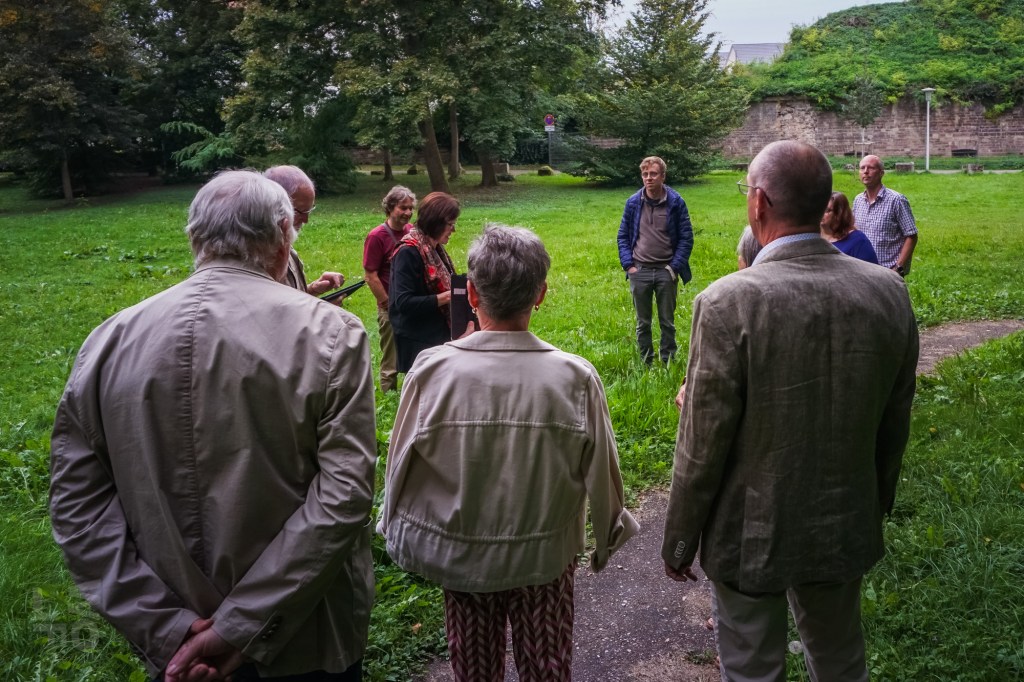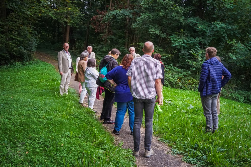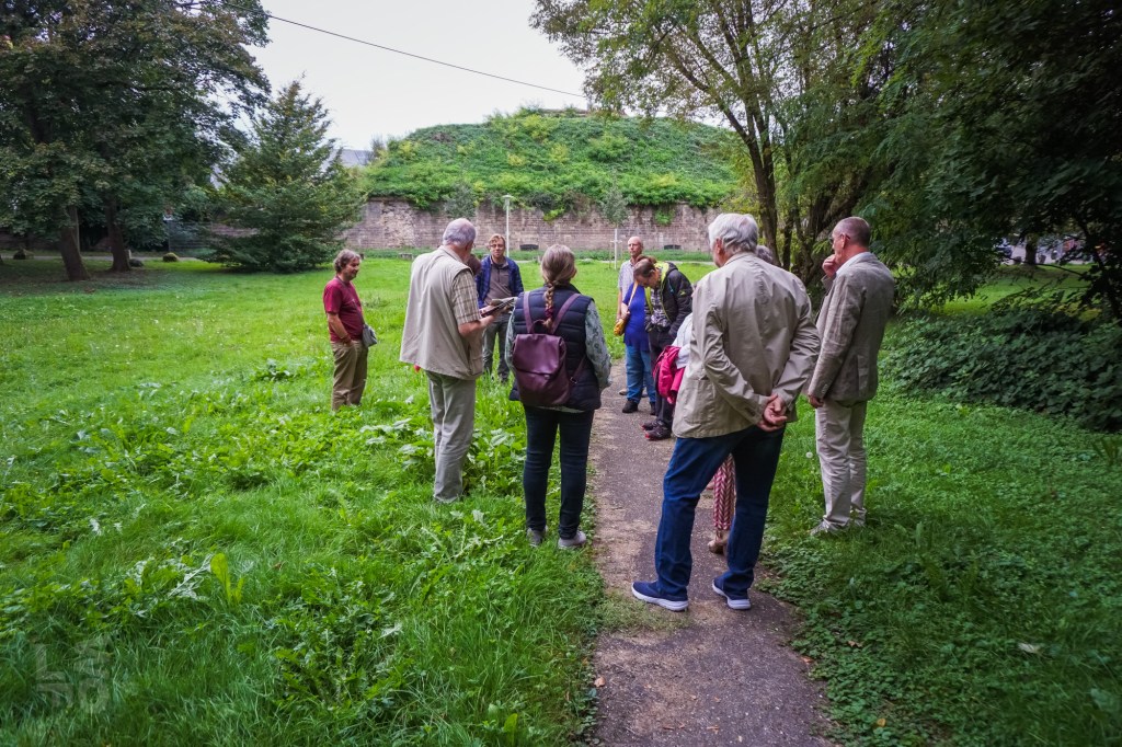Da ein Besuch des nunmehr historischen Freibads von Rastatt aus dem Jahr 1938 nicht mehr möglich war, besuchten die Aktiven des Historischen Vereins ein anderes Ziel aus Rastatts Vergangenheit: die Rumpelburg. Unlängst war dieses Bauwerk aus den Kindheitserinnerungen mancher Bewohner im BT vom 13. und 20.September 2024 vorgestellt worden. Die Aktiven fanden sich am Fuß des kleinen Hügels zwischen Cavalier 1 und Kasematten ein und hörten, dass die „Rumpelburg“ einst vom Gemeinnützigen Verein nach der Entfestigung Rastatts 1898/99 gebaut wurde. Der Verein hatte es sich zur Aufgabe gemacht, die Stadt nach Abtragung der Festungswälle zu verschönern und wurde deshalb „Verschönerungsverein“ genannt. Am Südring entstand nach Aufschüttung eines Hügels eine romantische Burgruine als Ausflugsziel. Kurt Pottiez zeigte alte Aufnahmen, Charly Fritz gab Erinnerungen zum Besten und jede(r) trug sein Wissen über diese einstige Attraktion bei.