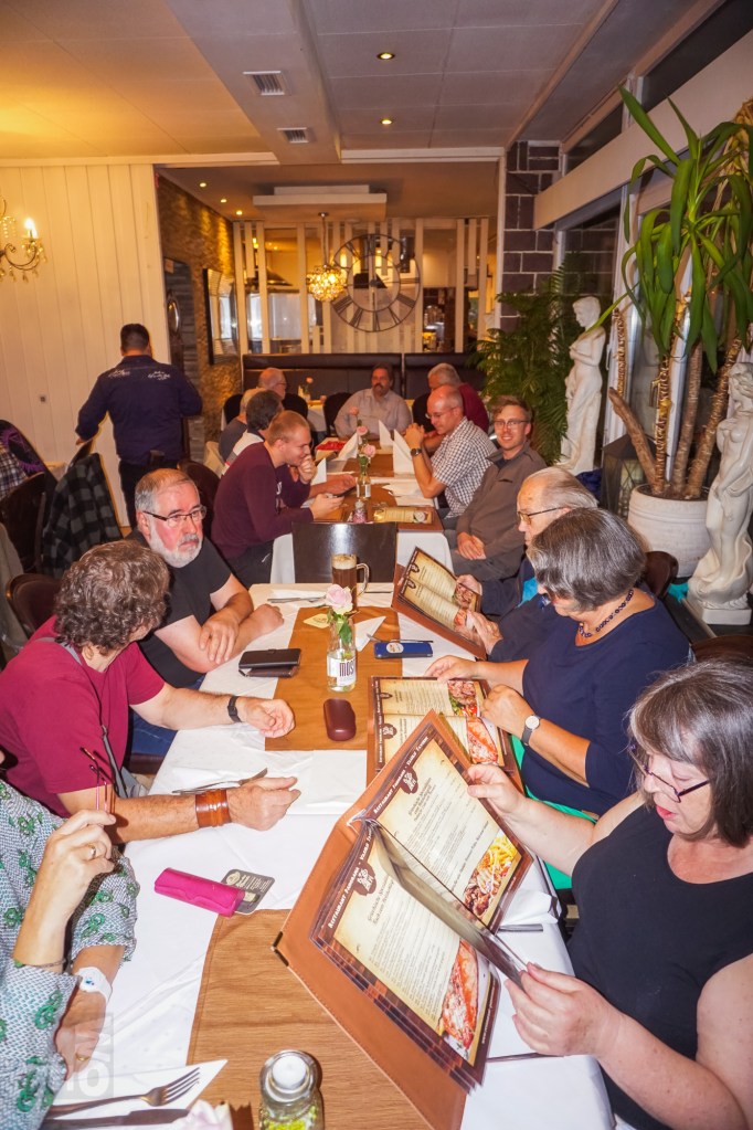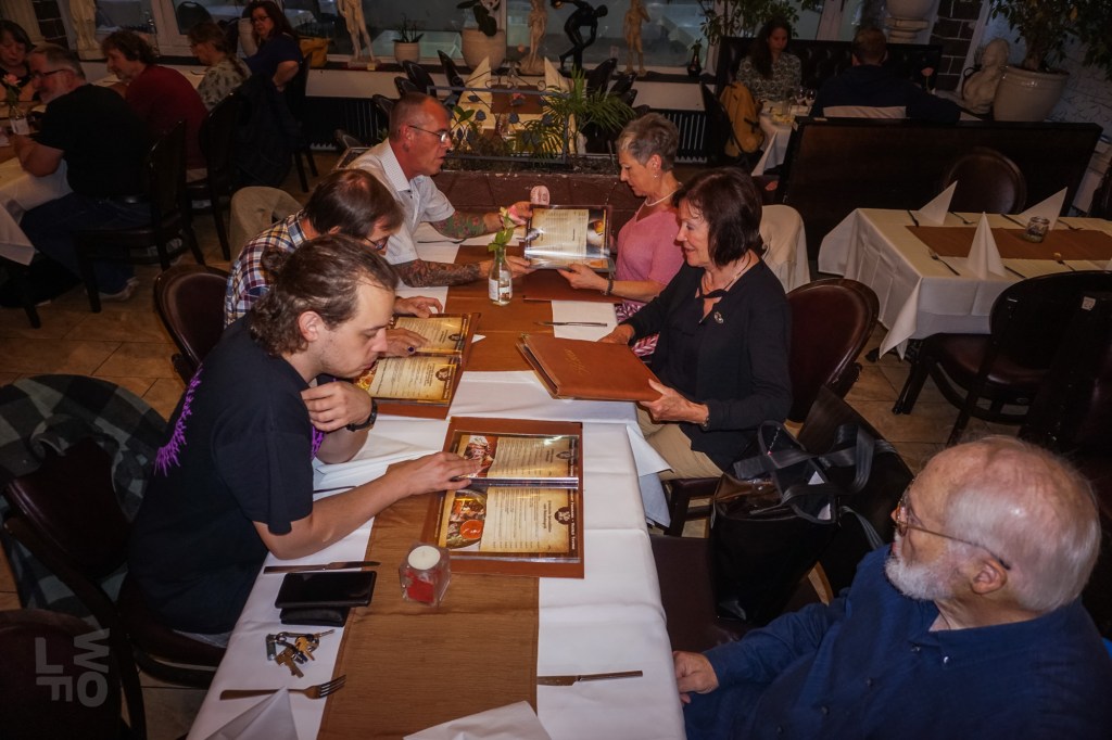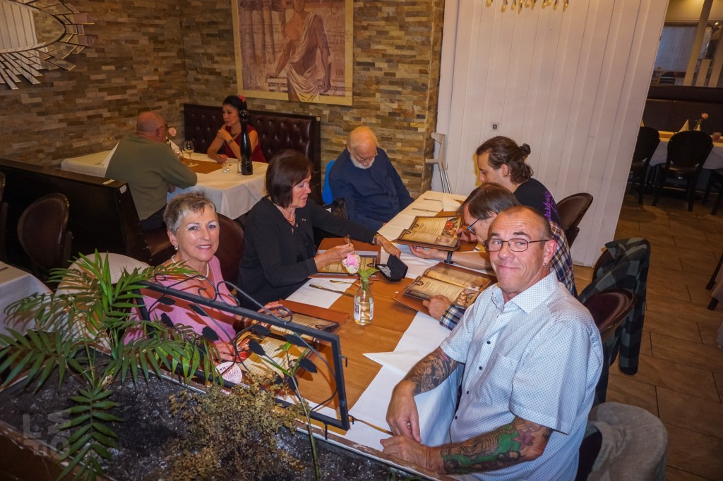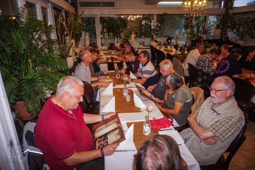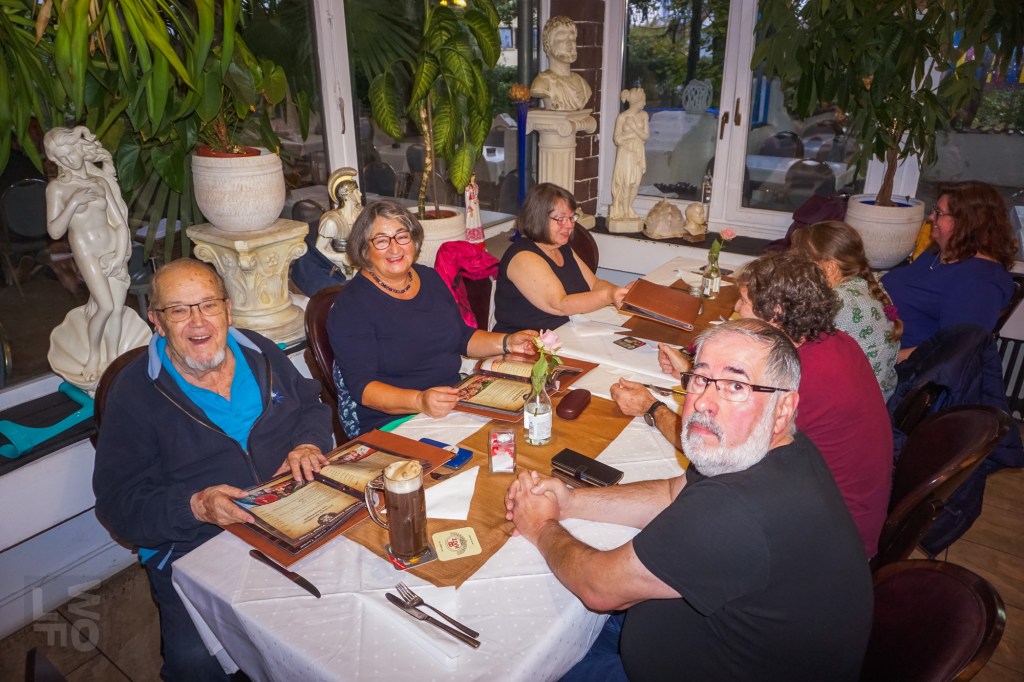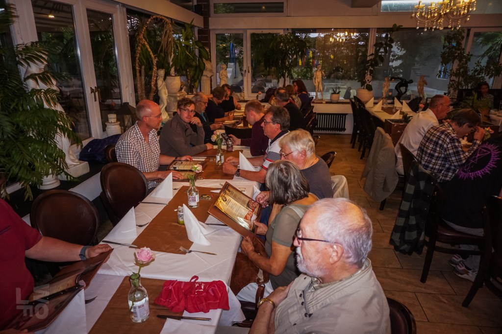 Nach so vielen Informationen war eine Stärkung nötig und die Aktiven machten noch einen Spaziergang über den Südring zum „Panorama“; wahrscheinlich wurde auch dieser Weg auf dem ehemaligen Glacis samt Baumpflanzung einst vom Gemeinnützigen Verein angelegt. Von der historischen Gartenwirtschaft am Panoramaweg ist außer dem Namen nichts mehr übrig, das moderne Lokal „bei Vassili“ bietet kretische Küche. Aber der Historische Verein ist auch europäisch aufgestellt; schließlich wurde Europa vom Stier nach Kreta getragen! Bei allerlei griechisch-kretischen Spezialitäten, Retzina und Ouzo klang der lehrreiche und gesellige Abend aus.