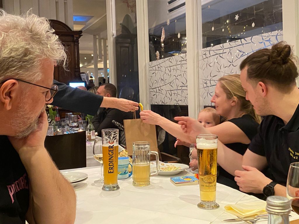 So konnte neben dem Nikolausbeitrag nur noch ein weiterer Programmpunkt stattfinden: Dirk steuerte eine kurze Erzählung bei, bevor der offizielle Teil ausklang. Auch einige Worte zur Tradition des ersten Weihnachtsbaums fanden noch Platz. Die Anwesenden nahmen die Umstände mit Humor, bedauerten jedoch, dass die räumlichen Bedingungen den Austausch und das gemeinsame Erleben stark einschränkten. Das Servicepersonal war bemüht und traf keine Schuld an der Situation.